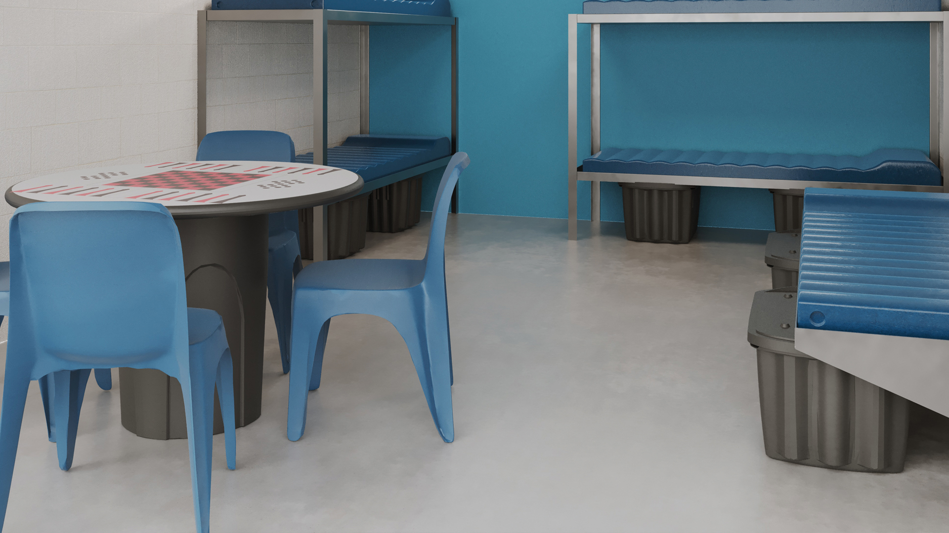 The Ironman® Steel Bunks come in three types: Ironman® Welded Wall Mount, Ironman® Single Welded Bunk, and Ironman® Double Welded Bunk. They are extra heavy gauge bunk beds intended for use in cells and sleeping areas in correctional environments. Fully welded and a universal formed steel pan. Bunks have a baked on factory applied polyester powder coat finish.
